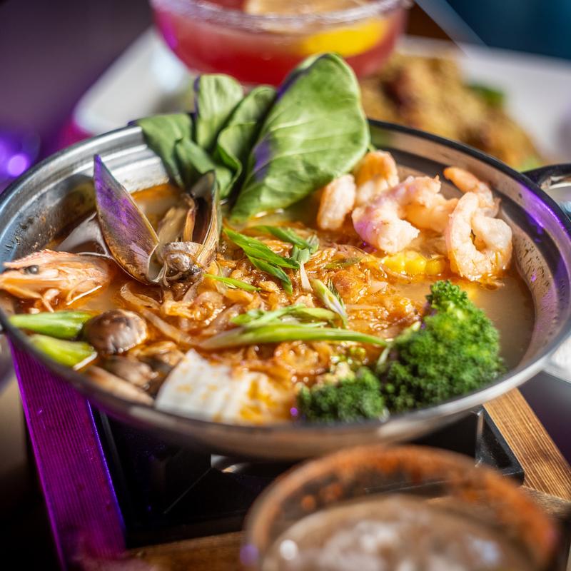 Shrimp,, Mussels, Tofu, Vermicelli, and Vegetables.